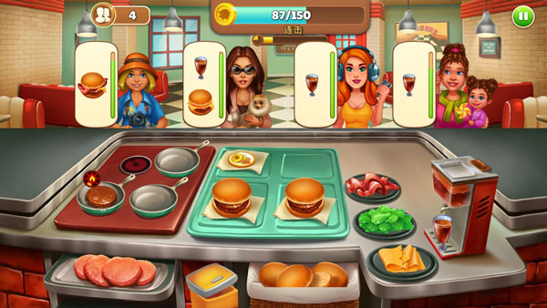 那么关于这款游戏的详细操作详情,小编接下来会一一奉上,感兴趣的朋友可不要眨眼哦,作为一名新手刚接触这款游戏,首先要做到的就是制作餐品的顺序,相对来说还是比较简单的,牢记客户的点餐需求,并针对性的制作相应美食,但若做错了顺序,那么也就意味着该餐品的浪费。