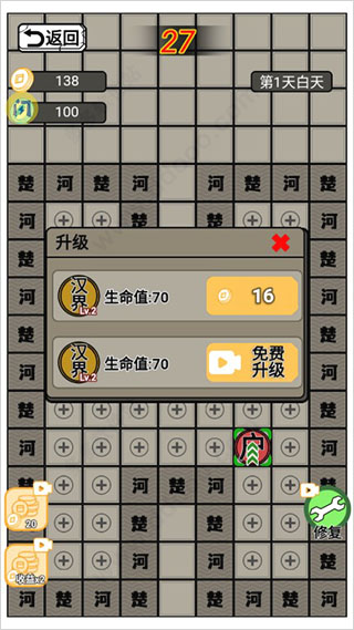 相信前段时间大家都玩过万宁象棋、猛鬼宿舍、躺平发育这几款游戏吧,这些游戏都凭借着他们独特的玩法迅速吸引了一大批的玩家,那你们玩过这几款游戏结合的躺平象棋万宁版吗?这款游戏在玩法上将万宁象棋中的大招模式完美的融入了躺平发育中,在游戏中玩家们只需移动象棋“帅”进行躺平发育,然后通过躺平发育获得而来的金币进行放置“兵”、“相”、“士”等等象棋,以此轻松的抵御敌人的进攻。不仅如此在前面小编也提到了大招模式,没错,本次躺平象棋万宁版游戏共有两种模式供大家选择,一种躺平模式,玩法跟躺平发育一样,另一种就是跟万宁象棋玩法一样的大招模式,在大招模式中,玩家可以开局选择过河拆桥、一夫当关、富甲天下等大招,不同的大招所带来的技能也是不一样的,如富甲天下就是让玩家在开局的时候,获得更多的铜币和粮草,可以让自己更快的发育成型,抵御敌人的入侵。总的来说这款游戏画面十分的简约清新,玩法也是非常的新颖,感兴趣的小伙伴可以来下载体验一下。ps:本次小编给大家带来的是躺平象棋万宁版破解版,游戏已修改了内部数据,可免广告获取奖励,小编小米10亲测有效,有需要的朋友可以来下载此版本。