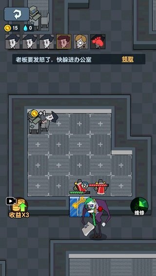 2、办公室题材的休闲塔防游戏,拥有超趣味的游戏玩法,和猛鬼宿舍类似的玩法让大家快速上手玩游戏。