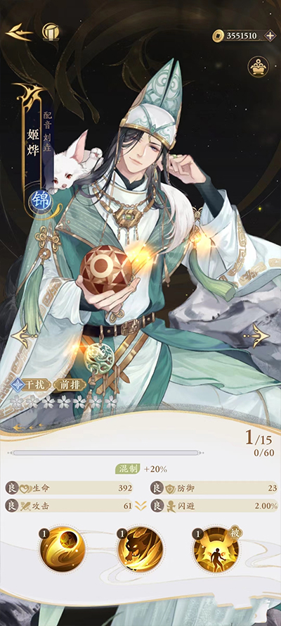 姬烨的大招莫生畏不仅提供高额的单体伤害,并降低目标的闪避能力。他的被动技能喵鸣,可以使得敌人攻击降低和闪避降低的技能,削弱敌人的能力。