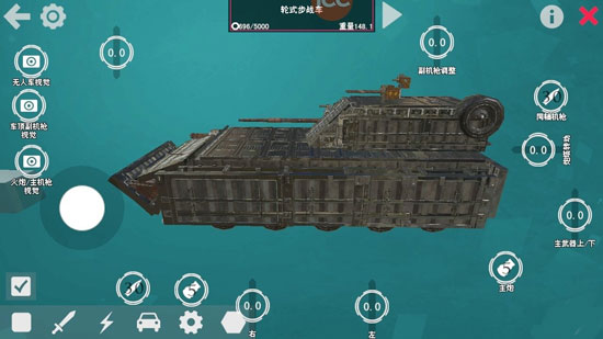pvp专属重装版战车,附加了装甲,全方位防护,为了稳定就把两侧火箭卸了,换了三门速射炮和一挺机枪,相比之前版本火力有所下降,另外无人小车拆除了自爆,因为自动对战一开始就会自爆。战车有内置推进器,有坡就能上天的那种。