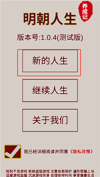 1、打开在本站下载的明朝人生养成记内购破解版,点击开启新的人生