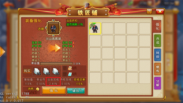 2、通过做任务获得的奖励,可以合成装备,不断提升自己装备的威力;