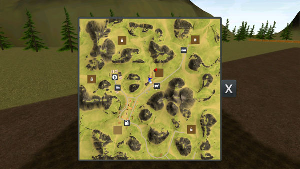 5、当你开着车到达农场的右边,这里显示的都是一些农具,将农具带到已经弄好的空地上。