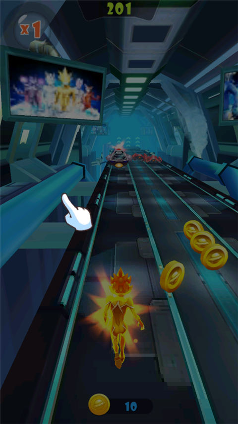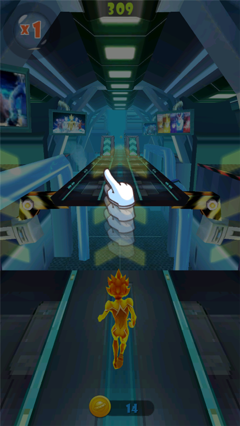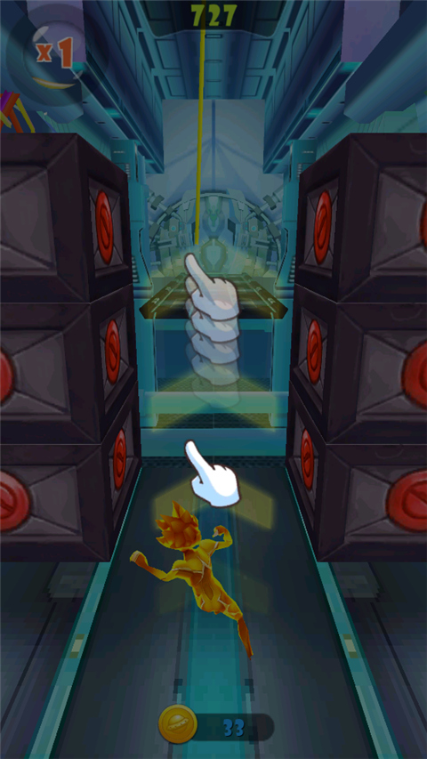 不同的场景有着相同的前进方式,玩家需要通过不停地变道以及上下操作,来躲避不时出现的各类陷阱。电网、滚石还与其他你想到的或是没有想到的障碍不断出现,而你作为超级英雄的控制者,担负着激发他内在潜力的重担,依靠你的双手,让雷伊和他的英雄朋友战胜困难,不断前进。