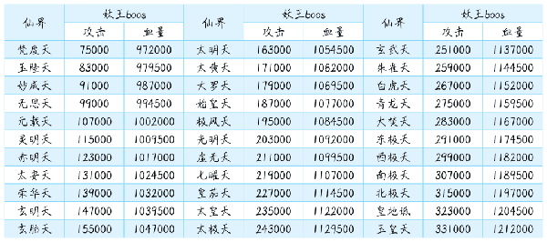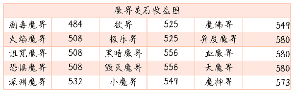 ③魔界:魔界怪物攻击最高,但是同样灵石收益与仙界相比并没有显著差别。
