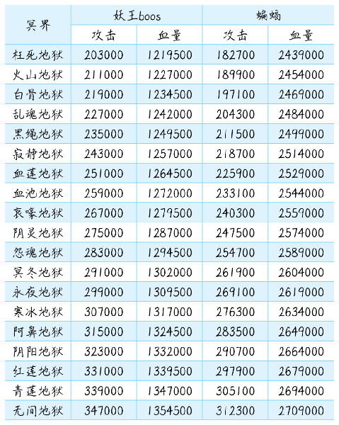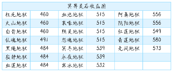 ②冥界:冥界怪物属性相比仙界怪物同星级伤害更高,但灵石收益并没有比同星级天界收益更高,所以单从灵石收益角度来说不推荐刷冥界。