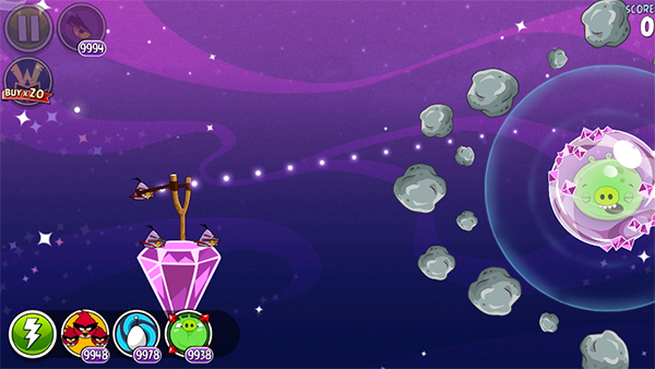 愤怒的小鸟太空版是一款非常受玩家们喜爱的3D动作射击冒险大制作,在此版本中使用了独特的物理特质,增加了重力圈的概念,第一宇宙速度、重力参数等物理概念也引入游戏,而且新版本中小鸟们将一改往日的飞行路线,在无重力的太空中直线飞行,一旦冲入小行星的重力圈,便会受引力的影响而变化轨道。新游戏里还有BOSS,就像里约版一样。比如,在一些章节的最后,就会有猪太空国王Space King,这个膨胀的猪开着一个有很多致命机械抓取臂的飞碟,即使是普通猪也变得更具挑战性了,比如说巨肥猪Fat Pig,其直径为国王猪的两倍,可想而知,它比胡子猪要更难打许多。