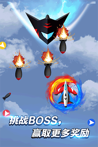 只需要一只手指,即可翱翔天际。丰富多样的战机让你感受更加刺激的战斗,更多关卡等你挑战
