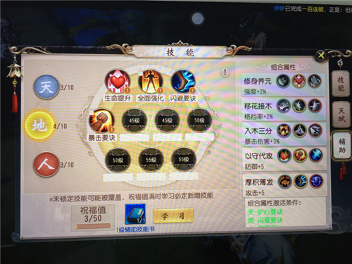除了战器就是辅助书了,和端游以及之前的版本的是,这次的辅助技能是直接打到人物身上的,不用再给宝宝打了,这样的话其实可以同时拥有多种辅助(被动)技能,点个赞!