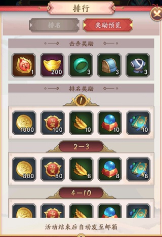 活动结束后,将依据对BOSS造成的伤害排行,发放排行奖励邮件,如果是对BOSS造成致命一击的最终击杀,还将额外获得击杀BOSS奖励。