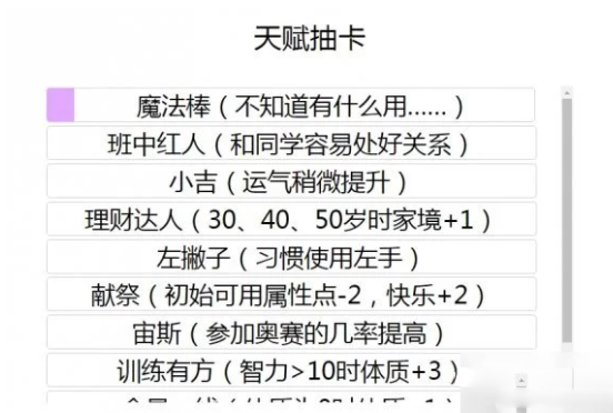 1、高度随机的游戏内容,特别是人生过程中玩家你将遇到各种随机事件,这个事件各不相同。
