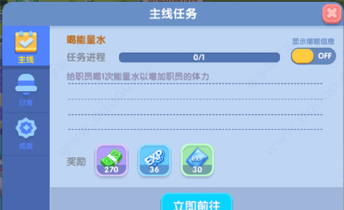 通过医治病人和完成日常订单等任务获取职员经验值对职员进行升级,职员等级达到一定级别的时候可以通过职员证书晋升职员。