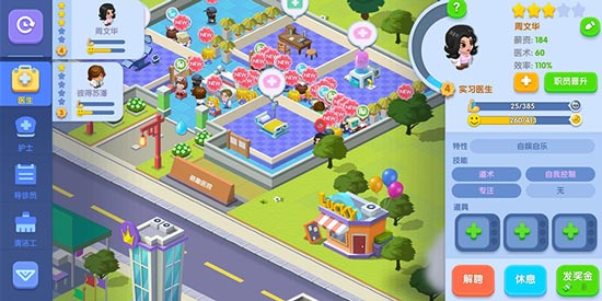 身为院长大人的你,职员医术值的高低不仅影响你医院的收入,而且还与你的医院荣誉息息相关