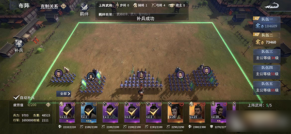 2、根据前期玩家想要搭配阵容,需要搭配武将,前期搭配4人,慢慢的阵容人数跟随等级升级增长到5人以及6人一组人,而且阵容也不只是一组阵容,在游戏中玩家可以分好几组。