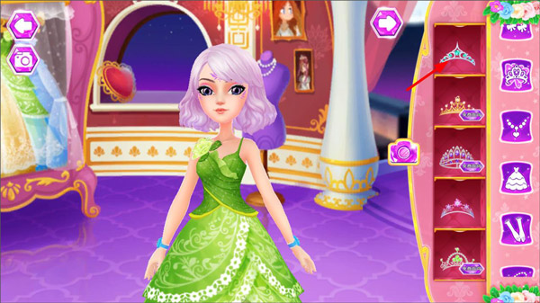 3、给公主画好妆容之后,玩家进入下一步,开始装扮公主,首先是换发色,依次进行配饰搭配;