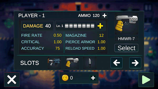 游戏里有很多不同的僵尸,比如普通僵尸、小丑僵尸还有拿着刀的僵尸,完成任务还能升级武器和角色。界面设计也很清晰,虽然有点暗,但敌人会隐藏起来,所以得时刻注意移动和射击方向。
