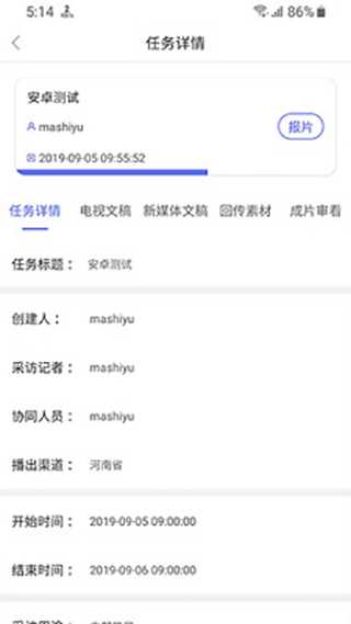 -- 任务内容多样,这里有着电视文稿、新媒体文稿以及回转素材以及成片审看等任务;