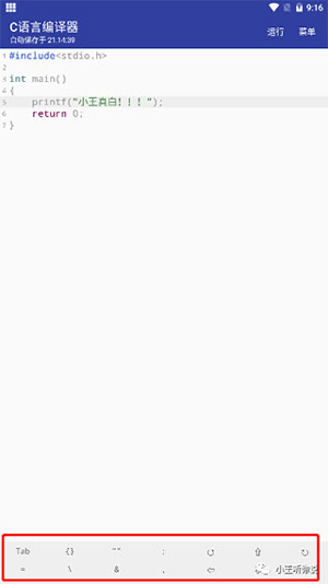 随着社会不断发展,现在学习编程的用户也是越来越多了,但用电脑学习又比较麻烦。为此小编给大家带来了C语言编译器手机版,这是一款功能强大,操作简单的C语言编程软件,主要为学习C语言用户而打造的,提供了核心的编辑、编译等功能,用户能够随时随地验证一些小程序,为自己解决疑惑。软件支持printf、cout等这种常用输出语句,在你敲打代码时,还为你提供了候选内容,这样编辑代码就不需要全部打出来了,还能快捷保存,方便下次继续编辑使用。另外,C语言编译器体积小巧实用,打开软件即可使用,并且没有任何广告,可以随时随地满足你敲代码的需求,有需要的用户欢迎下载体验。