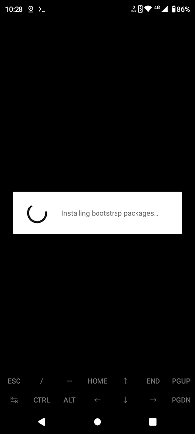 初次使用 Termux 需等待 Installing bootstrap packages (安装引导程序包)完成,如下图。