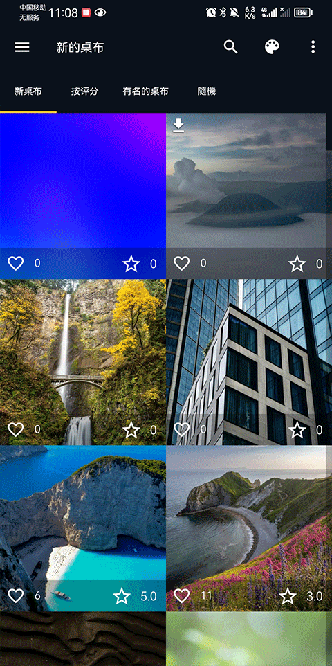 2、动态壁纸和透明壁纸都可以在里面找到,这些壁纸资源每天都会更新