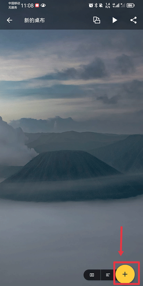 2、然后在选择后的壁纸界面中点击右下角黄色+号按钮