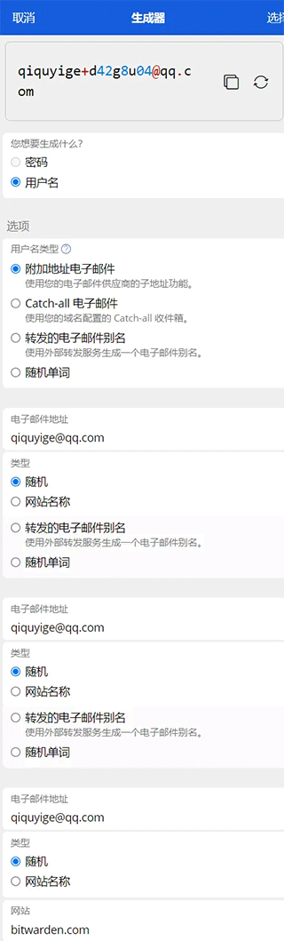 用户名生成:有多种类型可以生成,当然一般都是手动输入特定的个人账户名。