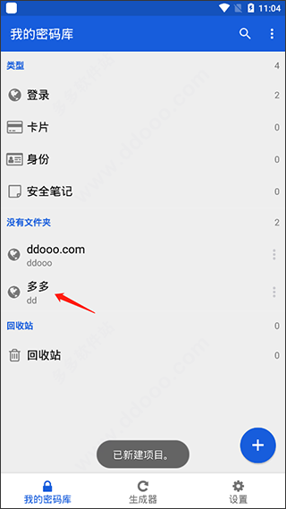 2、登录后即可看到软件主要是提供了我的密码库、生成器、设置三大模板;