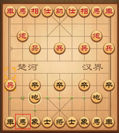 马走动的方法是一直一斜,即先横着或直着走一格,然后再斜着走一个对角线,俗称“马走日”。马一次可走的选择点可以达到四周的八个点,故有"八面威风"之说。如果在要去的方向有别的棋子挡住,马就无法走过去,俗称“蹩马腿”。