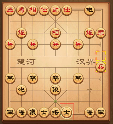 仕(士)是将(帅)的贴身保镖,它也只能在九宫内走动。它的行棋路径只能是九宫内的斜线。