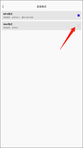 这样操作后下次录音出来的格式就变为WAV格式了。