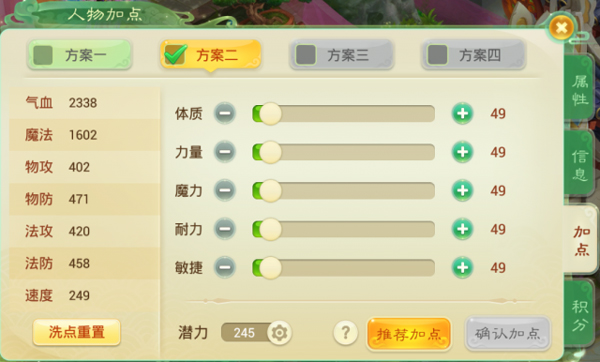 力量 增加力量点数可提高角色物攻,还可提高些许法防和速度
