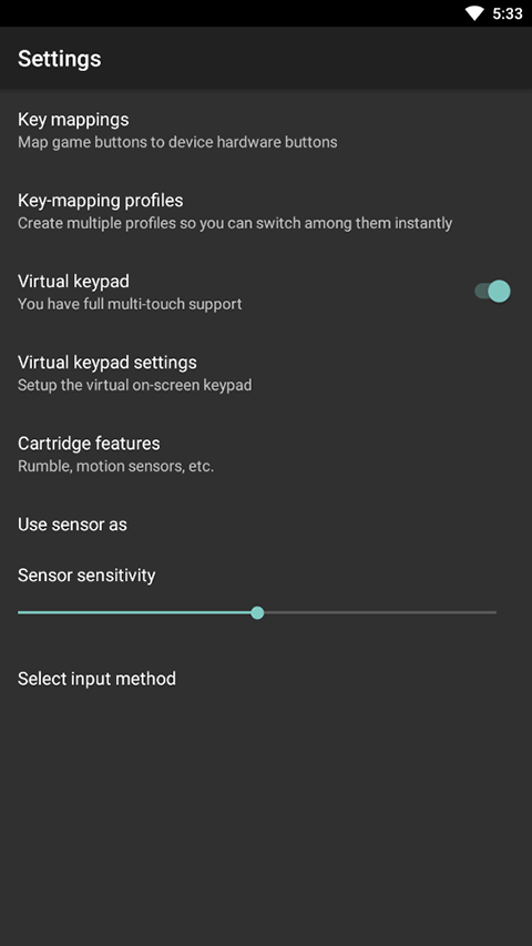4、点击“Input”就可以设置屏幕虚拟键盘,还可以调整传感器灵敏度。