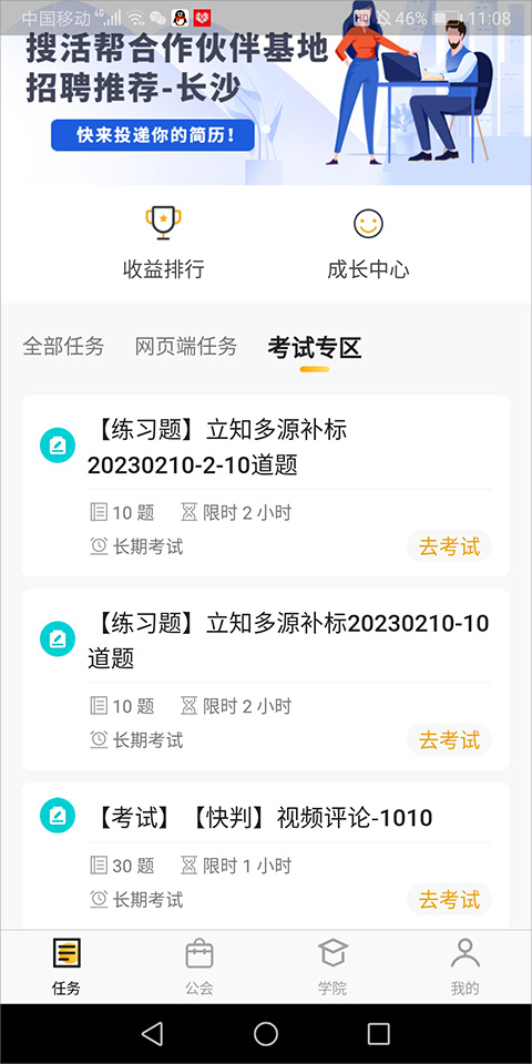 任务种类繁多,答题能力要求均有不同。所以平台会针对答题能力或要求进行考试,【考试】任务完成之后,有的会立即告知考试结果,有的需要人工阅卷,约48小时左右,会通知您的考试结果,考试通过之后,就可以做任务赚钱啦!