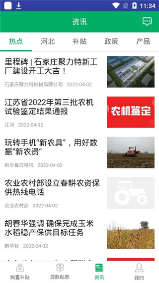 3、在资讯页面中,我们可以看到河北的热点、补贴、政策等等最新消息;