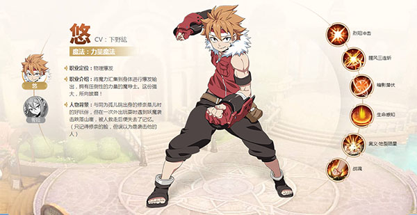 人物背景:与同为孤儿院出身的悠是儿时的好玩伴,但在一次外出玩耍时遇到妖魔袭击跌落山崖,被人救走后便失去了记忆。(只记得悠的脸,但误以为是袭击他的人)