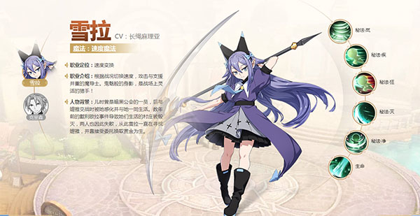 人物背景:儿时曾是暗黑公会的一员,后与媞雅交战时被她感化并与她一同生活。数年前的戴利欧拉事件导致她们生活的村庄被毁灭,两人也因此失散,从此雪拉一直在寻找媞雅,并靠接受委托换取赏金为生。