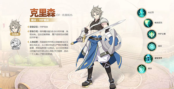 人物背景:克里森的爷爷和父亲都曾当过王国士兵队长,从小就对他进行严格的军事化教育,把他培养得十分刚正。长大后觉得自己的能力还不足以加入军队守卫国家,因此一个人踏上了修行的旅途。