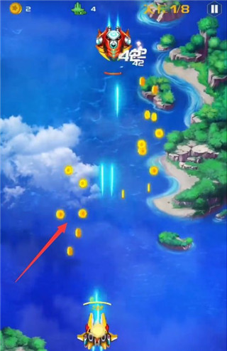 1、消灭敌人就能够随机掉落各种道具,拾取道具之后可以改变战机的战斗形态