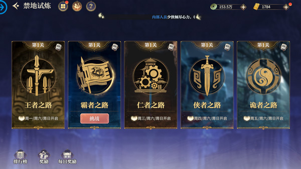 开启时间:每周定天开启对应玩法试炼
