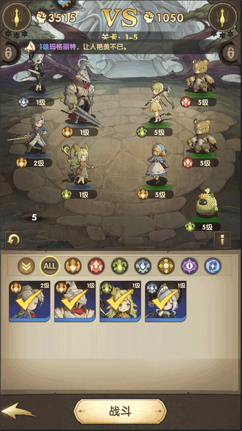 2、接着,在备战界面选择好出战英雄,点击战斗;
