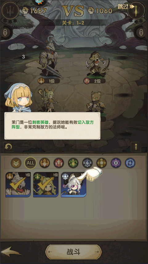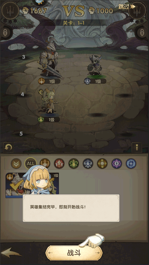 3、在这里选择好你的英雄之后(记住,你刚刚获得的英雄也要选择好),点击战斗就可以战斗了;