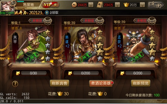 通过城池中的客栈按钮,可进入客栈。在客栈中可宴请指定3名武将,宴请武将后有一定几率获得大量将魂。