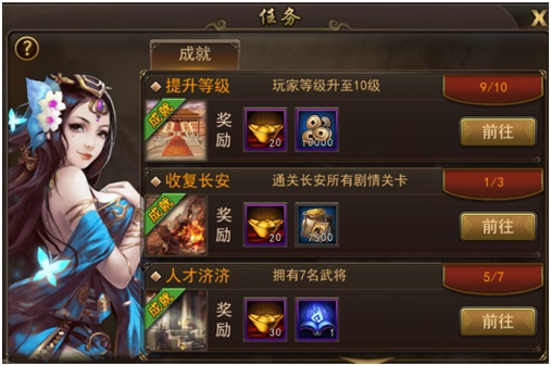 其次,攻城三国作为一款卡牌类策略游戏,玩家可在进入游戏后看到主界面左上角显示这玩家的姓名,等级,经验以及各种个人信息,期间您可以在主界面来更改自己的头像,或者对游戏的一些基本操作进行设置。另外,游戏内还有更多事件等着你去做:剿匪、斗酒、征税,每一天都等着你去规划~~还在等什么,快快到游戏中谱写你的故事吧!