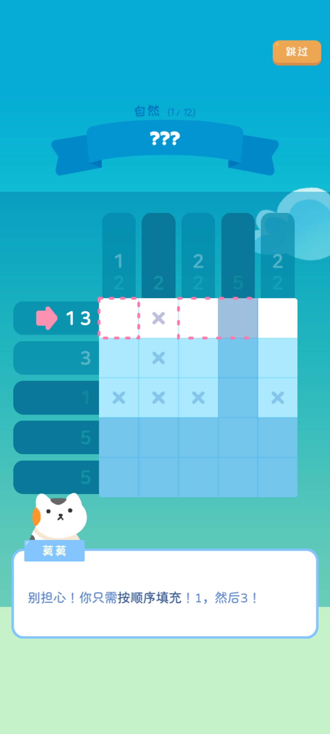 4、别担心!你只需按顺序填充 !1,然后3!