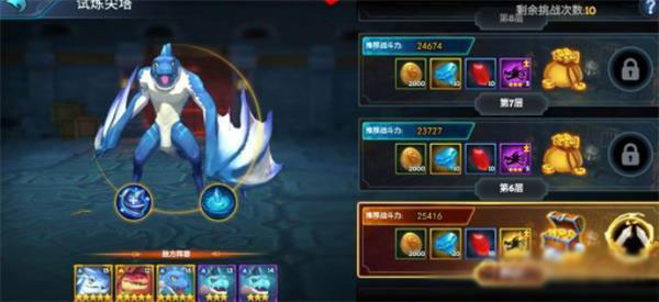 获取资源:通关试炼尖塔可以获得大量资源,包括金币,宝石,进化石,龙碎片等
