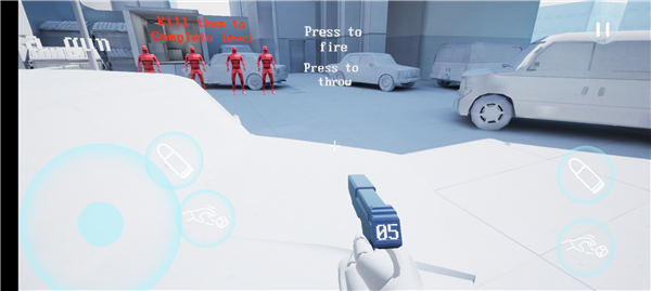 5、枪支在手时,功能键就会变成射击键和投掷键;