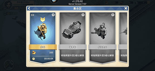 3、这里玩家可以选择步兵来训练;