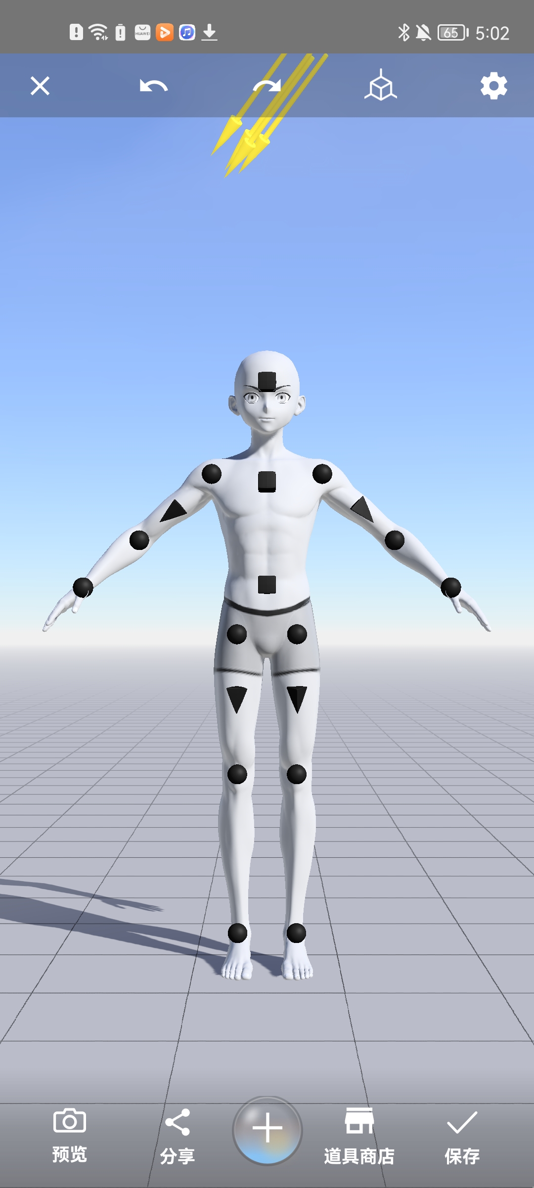 4、随后自定义diy角色啦,上面的黄色箭头是将身上的关节点都消除的功能