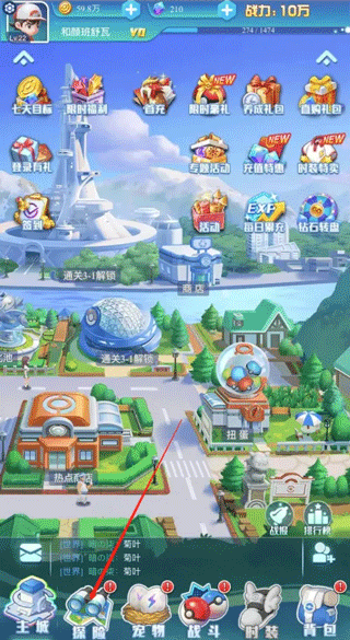 2、进入游戏之后,点击下方的“探险”